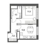 - 47 1-комнатных квартир от 31,9 кв. м. Минимальная стоимость 10 553 268 руб.